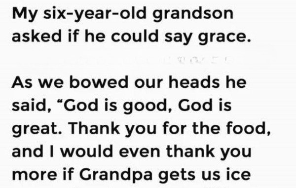Thank you for the food… and I would thank you even more if Grandpa gets us ice cream for dessert.