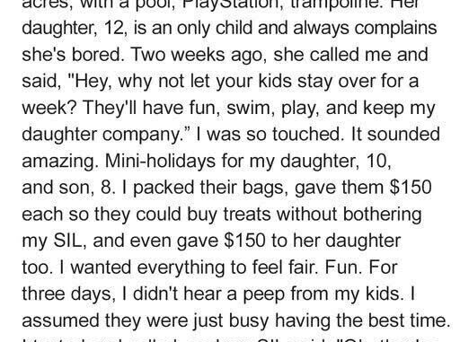 When my sister-in-law invited my kids to spend a week at her spacious home with a pool, trampoline, and games, I thought it would be a fun getaway for them. She said her daughter, Mikayla, wanted company, so I happily agreed and packed their bags.