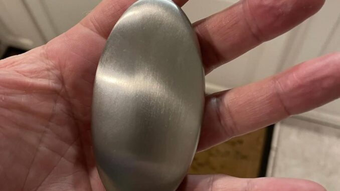 Utilizarea lui este extrem de simplă. Sub un jet de apă, freci metalul între palme, ca și cum ai folosi săpun obișnuit. Știința din spate e surprinzător de eficientă: compușii de sulf care provoacă mirosurile alimentare puternice se leagă de oțel, eliminând aroma fără a fi nevoie de substanțe chimice sau parfumuri artificiale. Rezultatul este pielea naturală, fără niciun indiciu al mirosurilor din bucătărie.