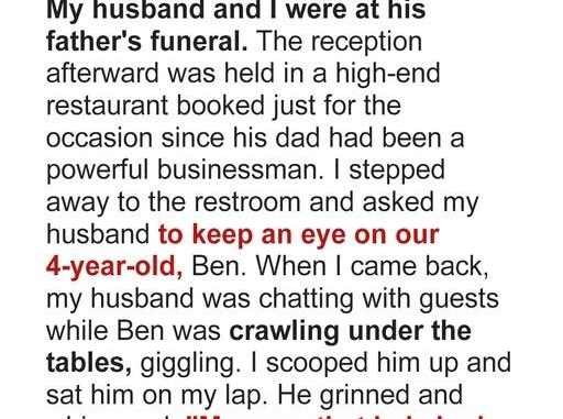 At my father-in-law’s funeral, my 4-year-old crawled under the table—and what he discovered there changed everything.
