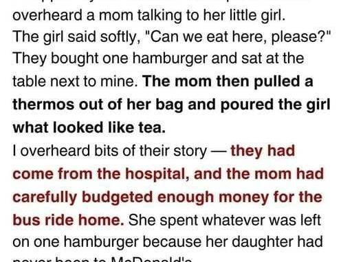 I was tired and running on empty when I went into McDonald’s that evening, just looking for something quick to eat. That’s when I noticed a mother and her young daughter sitting nearby. The mother looked worn down by life, bundled in a thin coat, while the little girl tried to stay hopeful despite everything.