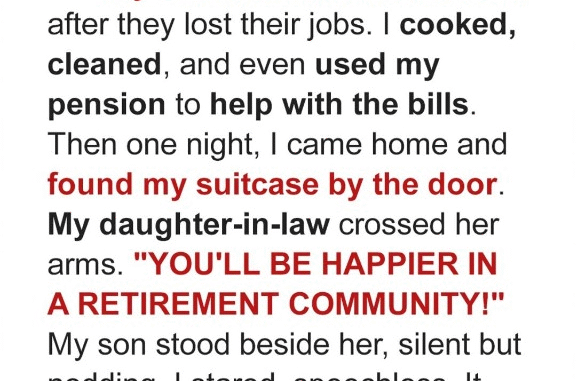 Then one evening, Hannah came home to find her suitcase waiting by the door. Claire stood there, arms crossed. “We’ve talked,” she said coolly. “You’ll be happier in a retirement community.” Ethan wouldn’t even meet her eyes.