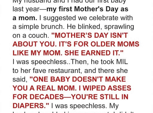 I’d spent the last year deep in the chaos of new motherhood — sleepless nights, endless feedings, and a kind of love I never knew existed. So when I shyly suggested celebrating my first Mother’s Day with a simple brunch, my husband laughed it off, and my mother-in-law scoffed.