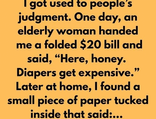 One afternoon, I found myself in line at a small corner store, carrying a few groceries and my tired baby resting against my hip. The hum of the fluorescent lights and the faint smell of coffee and bread were familiar comforts, but I felt the usual weight of every glance and every thoughtless remark. Then, an unexpected touch broke through my self-protective bubble. An elderly woman standing behind me gently tapped my shoulder. She smiled warmly, her eyes kind and full of understanding, and reached into her bag to hand me a folded twenty-dollar bill.