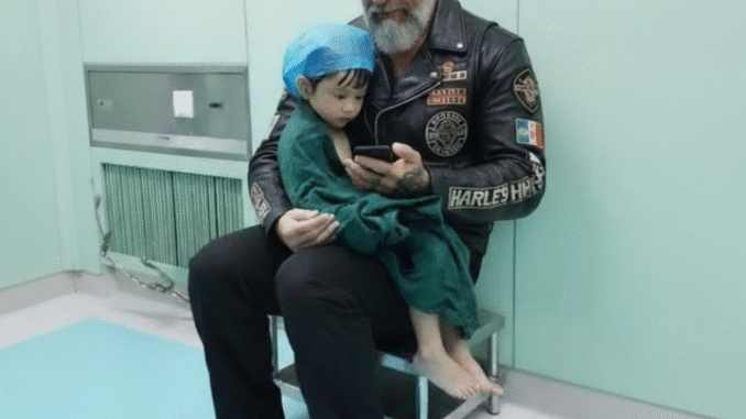 Amid the waiting room’s quiet tension, Liam spotted a man who seemed completely out of place — a massive biker with tattoos, a gray beard, and a leather vest. To my shock, Liam asked, “Mama, can I talk to him?” Despite my hesitation, the man, Mike, approached and gently crouched beside Liam.