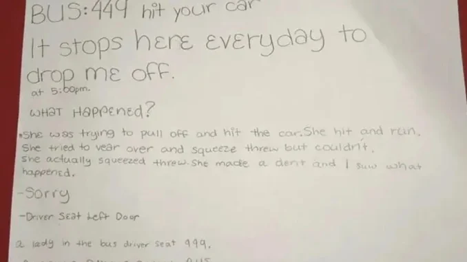 Andrew Sipowicz, 21, from Buffalo, New York, discovered a handwritten note on his vehicle explaining, “Bus 449 hit your car,” accompanied by a small drawing. After he posted it online, the child’s teacher recognized the handwriting and reached out to him.