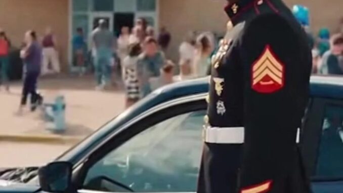 Solomon Dryden didn’t come here to be seen. He came to see. He parked his late wife’s Dodge Charger and stepped out into the Texas heat, the deep blue of his Marine uniform a stark contrast to the casual chaos of Elmridge High’s graduation day.