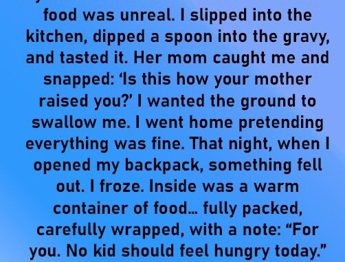 When I got home, I found a surprise in my backpack: a full Thanksgiving meal for my family and a note that read, “No child should go hungry on Thanksgiving. — Mrs. R.” The same woman who had scolded me had quietly shown immense kindness.