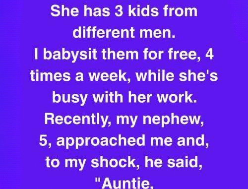 My sister is thirty-three, raising three kids with three different fathers, and carrying a lifetime of chaos she never learned how to manage. I stepped in because her kids deserved stability, even if she couldn’t provide it. Four days a week, I babysat for free. I cooked, handled pickups when she forgot, and tried to help her rebuild her life. I didn’t realize I was being taken advantage of—until the smallest person in the room told me the truth.