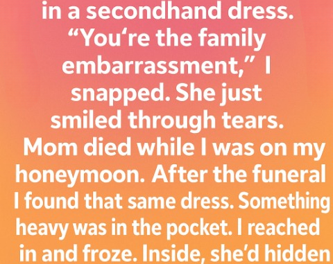 And then I saw it. The dress—the one I’d mocked her for—folded neatly in a box as though she’d placed it there with ceremony. For a moment, I just stared at it, feeling the kind of heaviness that makes your breath catch. I lifted it from the box, and as the familiar scent of her perfume drifted up, something fluttered to the floor.
