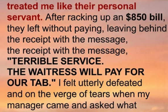 Friday nights are always hectic, but that night started with a sinking feeling. A demanding family arrived, nitpicking everything — the table, chairs, lighting, even the food. Every dish I served drew complaints. By the end of the meal, I thought I could finally relax — until I printed their $850 check and found their table empty, with a note claiming “terrible service.”