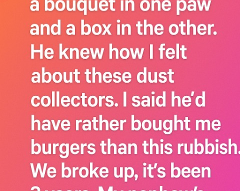 Years ago, my ex-boyfriend gave me a small toy bear holding a fabric bouquet and a tiny box. I hated knickknacks and joked I’d rather have burgers than “this fluff.” We broke up soon after, but somehow the bear survived every move and decluttering attempt, quietly staying on my shelf.