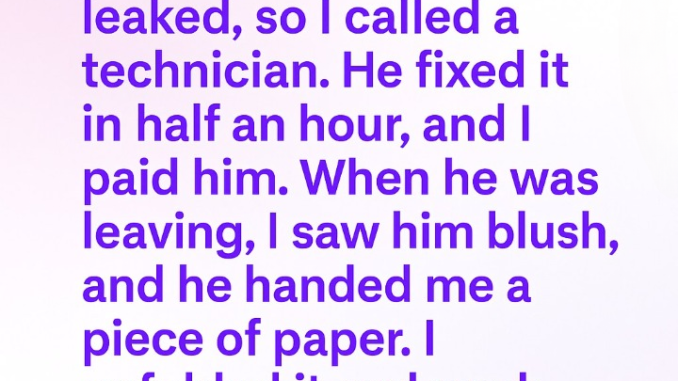 After paying him, I walked him to the door. That’s when he blushed slightly, reached into his pocket, and pressed a folded piece of paper into my hand.