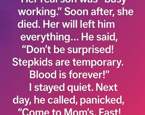 I never imagined my stepmother’s final weeks would unfold the way they did. I wasn’t her biological son—that was Mark—but I was the one who stayed after her surgery, cooking her meals, helping her move, managing her medications, and sitting with her through the pain. Mark always claimed he was “too busy,” even though everyone knew he wasn’t. Still, I didn’t resent him. She had loved me from day one, and caring for her felt like the least I could do.