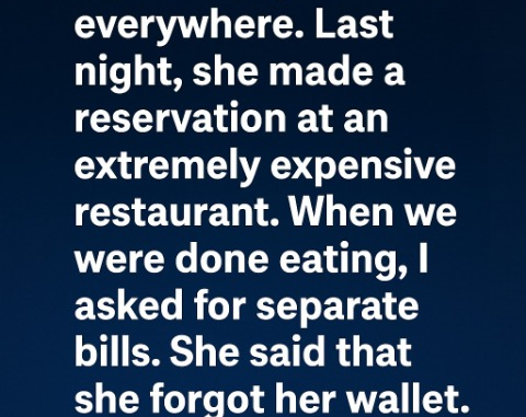 The silence was immediate and heavy. After an awkward laugh, she admitted her wallet was actually in her car. She paid her share, and the evening ended quietly — no argument, no drama.