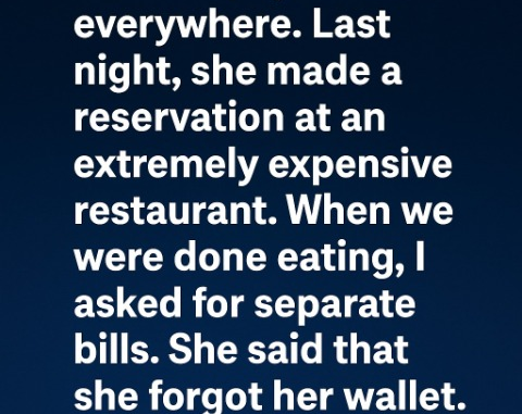 One night, she invited me to an upscale restaurant. I knew how the evening would end: her ordering extravagantly, then subtly expecting me to foot the bill. But this time, when the check arrived, I calmly requested separate bills.