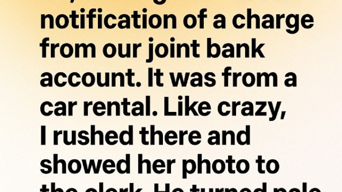 The notification arrived quietly—a routine bank alert that should have meant nothing. But eight days after the funeral, it showed a charge from our joint account: a car rental. Something that shouldn’t have been possible. Grief gave way instantly to panic.