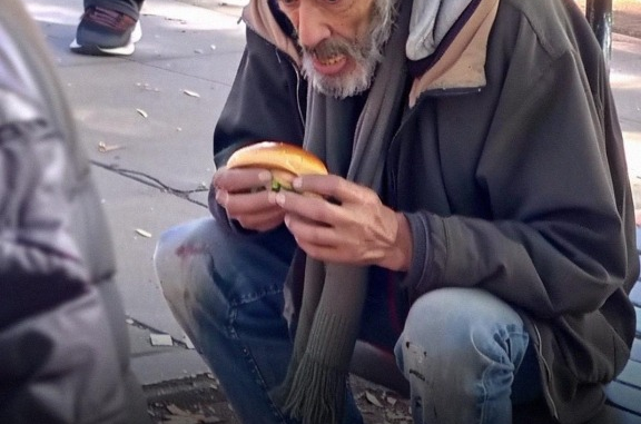 “I bought a burger for a homeless man, and when he looked at me, he said two words that completely took me by surprise.”