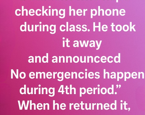 One lesson unfolded in a middle school classroom. A teacher noticed a student repeatedly checking her phone and, assuming she was distracted, confiscated it. Laughter followed, but the mood shifted when the student’s pale, anxious expression became evident. She stepped outside, and soon the vice principal intervened. Later, it was revealed that the missed calls were from a hospital—her family member had been rushed in unexpectedly. The teacher, recognizing his error, addressed the class the next day, acknowledging that compassion matters as much as rules.