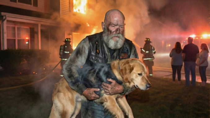 It happened on October 26th at 9 PM. We’d been at my grandmother’s birthday party when neighbors called, screaming that our house was on fire. Flames and smoke poured from the roof, and Honey was trapped inside. Panic froze us. Then a bald, bearded biker appeared, jumped off his Harley, and ran into the inferno. Minutes later, he emerged with Honey safe in his arms—smoke-covered, burned, and coughing.
