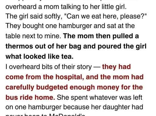 In the rush of modern life, it’s often the quietest moments that reveal the deepest truths. For John, exhausted from a week of high-pressure work and financial decisions, a routine stop at a McDonald’s became unexpectedly meaningful. Amid the fluorescent lights and familiar clatter, he noticed a mother and her young daughter struggling with a simple choice: the child wanted a Happy Meal, but the mother could only afford a basic item to share.
