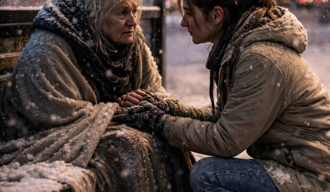 On a freezing December night, after a long day cleaning the Graysons’ mansion, I spotted an elderly woman shivering on a bus bench. Despite my own struggles raising five kids alone after my husband’s death, I invited her to my small, drafty home.