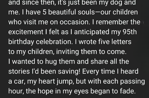 For weeks, I’d hoped my children would come for my ninety-fifth birthday. I even wrote each of them a letter, asking for nothing but their presence. I baked a small cake, set five extra chairs, and dressed carefully, imagining laughter and hugs filling the room.