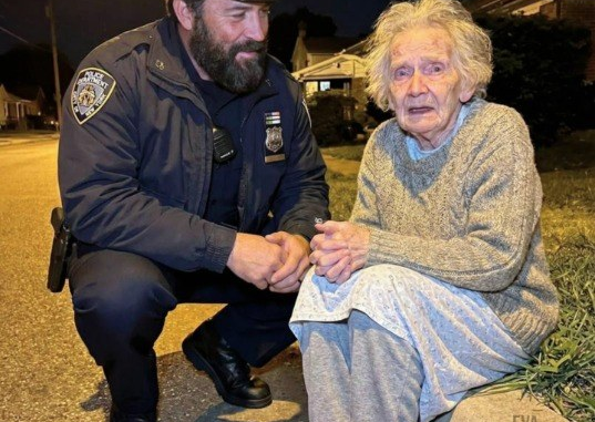 James turned off his lights and siren, then did something unexpected—he sat down beside her on the cold curb. Instead of rushing her into the patrol car, he spoke softly, held her hand, and listened as she shared fragmented memories of her past. She wasn’t dangerous; she was lost.