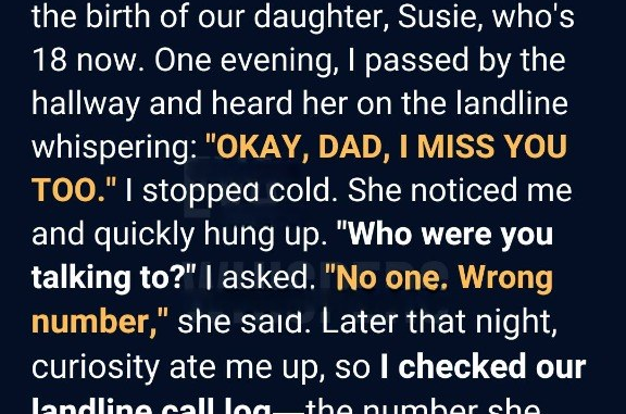 It was an ordinary evening, the house quiet, when I heard Susie whisper into the landline, “Okay, Dad… I miss you too.” My heart stopped. She noticed me listening, quickly said it was a wrong number, and shut her door.