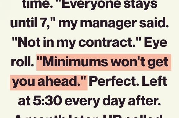 My manager called me in, clearly annoyed. “Everyone stays until at least 7. That’s how you show dedication,” she said. I stayed calm and replied, “My contract says 9 to 5:30. That’s my schedule.” She rolled her eyes. “Doing the bare minimum won’t get you far here,” she snapped.