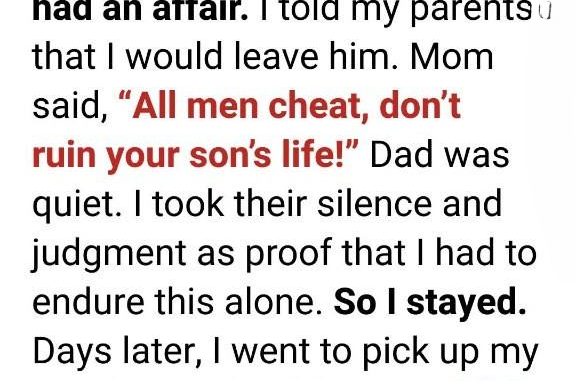 That night, I went to my parents, determined to leave him. I needed support, someone to say I wasn’t wrong. My mother’s response cut deeper than the betrayal: “All men cheat. Don’t destroy your son’s life over something so small.” My father sat silently, thoughtful, but said nothing. Feeling alone, I stayed.