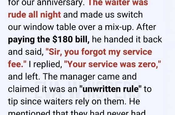 A manager appeared shortly after. I explained everything calmly. He listened without reaction, then said tipping was an “unwritten rule” and that they’d never received a zero-dollar tip before.