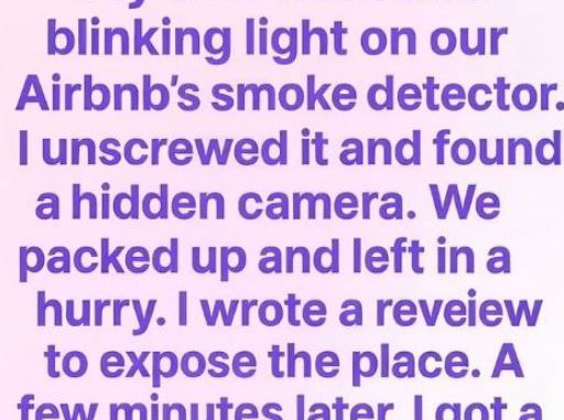 We didn’t argue or call the host. We packed in minutes and drove to a gas station, shaking, the smoke detector sealed in a grocery bag. I left a blunt review: Hidden camera in the bedroom. We left immediately.