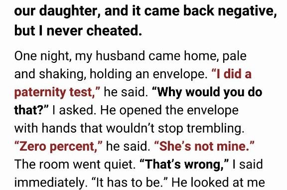 Then one night, he came home pale, clutching an envelope. “I took a paternity test,” he said, voice hollow. “Zero percent. She isn’t mine.”