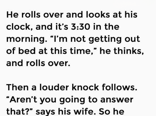 At 3:30 a.m., a man was jolted awake by heavy knocking. Half-asleep, he reluctantly answered, expecting a drunk stranger asking for trouble—but the man just wanted a “push.” Irritated, he sent him away, only for his wife to remind him of a past time he’d needed help himself.