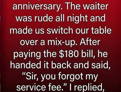 When the bill arrived, I paid without a second thought. The total wasn’t the issue, but when the waiter returned accusing me of forgetting the service fee, I calmly explained that the service hadn’t warranted one and walked away. On the drive home, we discussed respect and boundaries, realizing that the way we respond in small, challenging moments reflects our character. The following day, the manager called with a sincere apology, bringing closure to the evening. What lingered wasn’t disappointment but the lesson that dignity, honesty, and self-respect are worth far more than any meticulously planned night.
