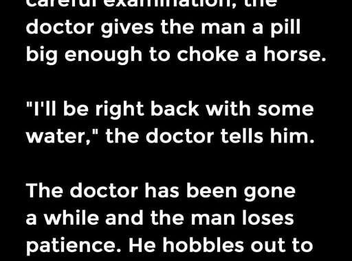 Take the timeless doctor’s visit: a man arrives with a swollen leg and is given an enormous “pill.” Only after he painfully swallows it does the doctor return—with a bucket of water—to explain the pill was meant for soaking, not swallowing. The joke highlights how assumptions often create unnecessary hardship.