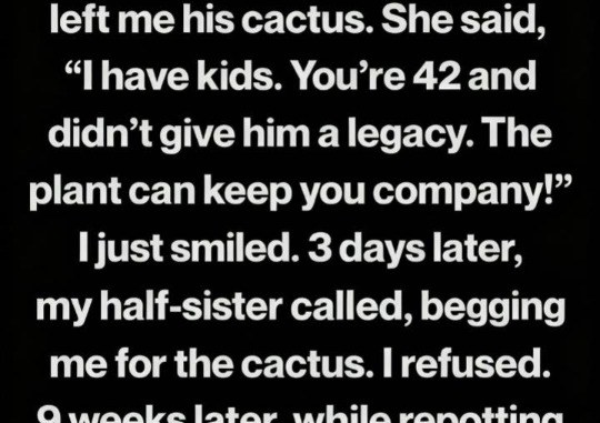 The will reading went as expected. My half-sister received the house, the savings, everything tangible that measures a lifetime. When the lawyer turned to me, he handed me something almost absurd: my father’s cactus.