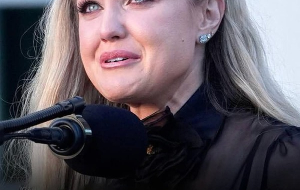 When Erika Kirk stepped onto the stage, the energy shifted. She didn’t raise her voice or her fist. Her movements were controlled, almost fragile. She placed her late husband’s wedding ring on the podium and stood quietly as the crowd began to still. What followed was not a speech fueled by rage, but a public display of grief.