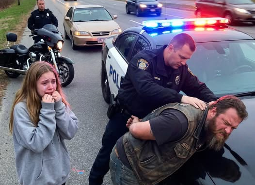 My daughter Emma called me, terrified—she said a huge biker was following her for three miles while she drove our old Honda. Hands shaking, I called 911, trying to stay calm as she sobbed on the phone. Every turn, every lane change, he stayed behind her.