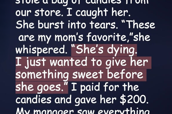 I was working a quiet late shift when I noticed a girl, no older than sixteen, slipping candy into her pocket. I confronted her gently, and she collapsed in tears, explaining it was for her dying mother. Moved, I paid for the candy and even gave her extra money for her family.