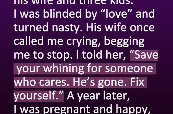 I took a married man from his family—his wife, his three children, the life he’d built. I convinced myself it was love, that desire excused betrayal. I became someone I barely recognized—cold, selfish, cruel. His wife called, begging me to stop, to return her family, and I dismissed her pleas.