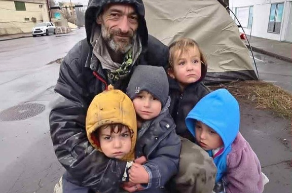 Not long ago, Sean had a stable life—a steady job, a home, and a family routine. Everything changed when his wife became seriously ill. Medical bills drained their savings, forcing him to sell everything they owned. After her death, Sean was left with four children and nowhere to go. They ended up living in a tent, surviving day to day on part-time work and careful choices.