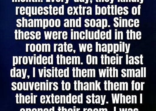 From the very beginning, they fit into the hotel’s rhythm as though they had always been there. Each morning, they greeted staff members by name, asked about overnight shifts, and lingered near the coffee station in quiet conversation. When they requested additional soap or shampoo, they did so kindly, never with expectation or entitlement. Their reservation included unlimited toiletries, so Lina thought little of it. Still, they thanked her every time, as if she were doing them a favor rather than fulfilling a service.