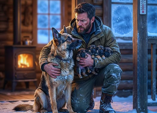 On one of the coldest nights in years, with temperatures plunging past −15°C, Cole Archer was alone in his remote cabin when he heard faint scratching outside. Opening the door, he found a frost-covered German Shepherd bracing against the storm, her four tiny puppies huddled beneath her. They were barely alive.