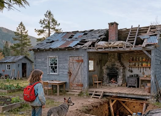 A dirt service road climbed away from the highway’s glow and into deeper silence. After walking nearly half a mile, she found a log cabin with a metal roof and a still American flag hanging from its porch. It felt solid and hidden, like a place built to endure. The cold pressed in, leaving her with little choice. Carefully tapping a cracked windowpane with a rock, she slipped inside.