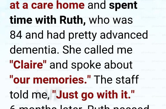 A nurse touched my arm and shook her head. Later, she explained quietly that Ruth’s daughter, Claire, had died years ago, and Ruth’s dementia often caused confusion. Correcting her would be cruel.