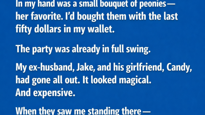 Clutched in my hand was a small bouquet of peonies—her favorite. I’d spent the last fifty dollars I had. Rent was looming in three days. But I refused to arrive empty-handed.