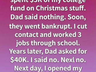 While I carefully saved for college and dreamed of independence, my stepmother treated my education fund like a holiday account—thousands vanished on gifts, decorations, and […]
